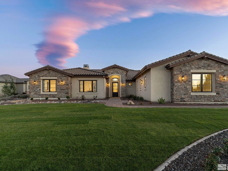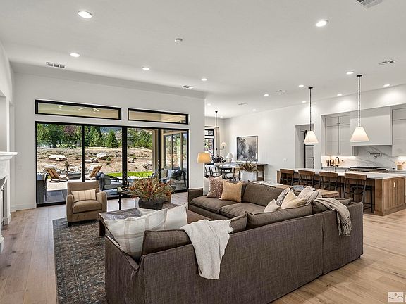 Contemporary single-level NEW CONSTRUCTION in ArrowCreek! Outstanding custom finishes include French white oak hardwood & porcelain flooring, slab quartz countertops, designer light fixtures, sleek barn doors, upscale GE Monogram appliances, impressive walk-in pantry, and more. The brilliant floor plan showcases 4 Ensuite Bedrooms, plus two voluminous flex spaces for a Living/Game/Bonus Room, and/or Office catered to your personalized lifestyle. Generous 1-acre surrounded by mountain, city, & golf views!, This home at 6197 N. Featherstone is just .2 miles away from ArrowCreek’s “Harbottle Park,” which offers a shaded pavilion, playground, bocce ball, and more. All ArrowCreek residents can enjoy the Residents’ Center, which includes a community pool complex, tennis and pickle ball courts, basketball court, fitness center, playgrounds, BBQ areas, open lawn space with surrounding par course, and miles of walking trails. The Club at ArrowCreek recently unveiled a remarkable $70M expansion. Members can enjoy 36 holes of golf, elevated dining outlets, pool amenities, state-of-the-art fitness center, driving range, putting greens and chipping areas, bocce ball, special event spaces, and clubhouse activities and events. There is no membership offered with this sale; please inquire with ArrowCreek’s Membership Director for membership options and availability. ArrowCreek is a private gated golf course community with 24-hour manned security. Just 20 minutes to the Reno-Tahoe International Airport, 25 minutes to the Mt. Rose Ski Resort, and a short 40-minute drive to beautiful Lake Tahoe.