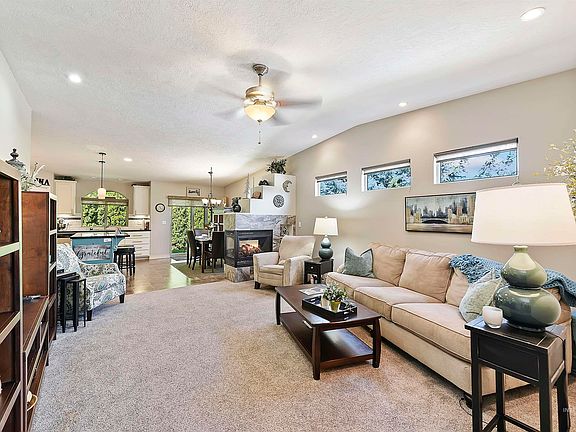 Spotless single level home in a quiet area. Low maintenance with fresh paint & HOA maintaining front & back lawns, trees, bushes & sprinklers. Snow removal in the winter. Large soccer field in the rear of home. This beautifully maintained home features new furnace & AC. Large island & counter tops with granite surfaces. Stainless appliances & walk-in pantry. Large dining area with 3 sided tiled fireplace. Open concept in living & kitchen with vaulted ceilings. Spacious master bedroom features large walk-in closet with lots of natural light. Newer cabinets in master bath. Direct access to private rear patio with gas hookup for BBQ. Minutes to shopping, Winco, Costco, great dining, YMCA & Golf Course.