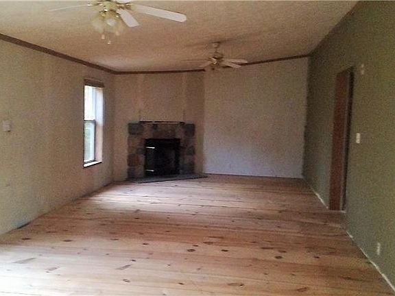 This manufactured home has a split floor plan. It has both a living room and a family room. It is situated on 5 acres in a quiet, rural area. The living and family rooms have unique wood plank floors. The home has lots of natural light. The family room has sliding doors that walk out onto a back deck with nice, wild views. (You may need to use Nashville as the city if using GPS to locate the property.)