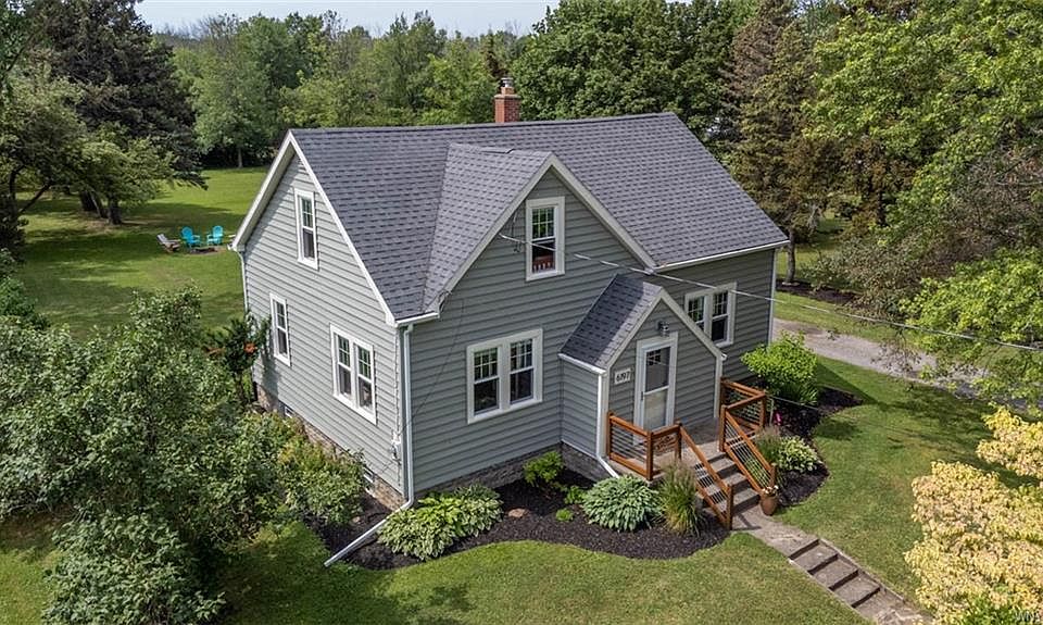Welcome to the well maintained and cared for 6197 Webster, on over a full acre in the highly rated Orchard Park school system! Like new, so many updates have been added to bring down the effective age of this lovely home. Updates include: Asphalt roof 2015, metal garage roof 2020; all new windows 2020, glass block in basement 2020; new electric (wire and box); all new back deck and front railings, and vinyl siding. Truly a turn key home for either a first time home buyer, a buyer downsizing or a new family looking to experience the greatness that Orchard park has to offer. Enjoy the beautiful backyard, the amazing deck, or relax and enjoy friends and family around the fire pit. An added mudroom with huge closet is the perfect bonus to this already charming home. First floor bedroom with a walk-through two beds upstairs. Plenty of storage in the dry basement, or store items in the loft in the garage. All appliances are included, washer is negotiable.