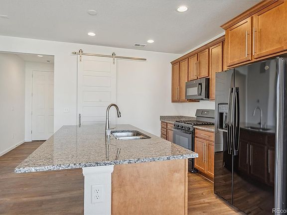 **!BACKYARD LANDSCAPING & FENCING INCLUDED!**This Citrine is waiting to impress its residents with two stories of smartly inspired living spaces and designer finishes throughout. The main floor is ideal for entertaining with its open layout. The expansive great room welcomes you to relax with its full-height fireplace and offers views of the covered patio. Beyond, the open dining room flows into the well-appointed kitchen that features a quartz center island and stainless-steel appliances, including a refrigerator. Retreat upstairs to find two generous bedrooms and a shared full bathroom that make perfect accommodations for family or guests. The laundry, with washer and dryer, room rests near the primary suite which showcases a private bath and immense walk-in closet. **ASK ABOUT OUR SPECIAL FINANCING. CALL 303.850.5757 TO SCHEDULE A TOUR TODAY!**