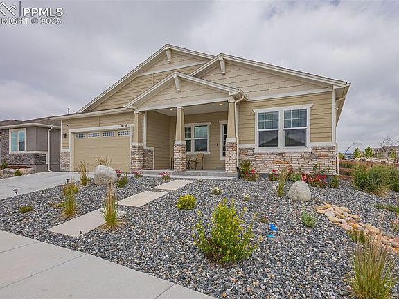 Welcome to an exquisite ranch-style residence on a corner lot nestled in the prestigious Wolf Ranch neighborhood of Colorado Springs. This stunning luxury home spans 4,696 square feet, offering a perfect blend of elegance and comfort. Boasting 5 spacious bedrooms and 4 elegantly designed bathrooms, this home provides ample space for both family living and modern entertainment. As you step inside, you'll be captivated by the open floor plan with LVP flooring throughout the main level, accentuated by high ceilings and abundant natural light. The gourmet kitchen is a chef's dream, featuring top-of-the-line appliances, custom cabinetry with soft close drawers, and a large center island perfect for meal preparation and casual dining. Adjacent to the kitchen, the inviting living area with a cozy stone fireplace creates a warm and welcoming ambiance. The primary bedroom is a true retreat, complete with a spa-like ensuite bathroom, dual vanities, a soaking tub, and a separate walk-in shower. Each additional bedroom is generously sized, offering plenty of closet space and access to beautifully appointed bathrooms. The fully finished basement provides additional living space, perfect for a home theater, gym, or game room as well as 2 bedrooms including 1 full bathroom. Outside, the meticulously landscaped yard offers a perfect blend of beauty and functionality. Enjoy Colorado's stunning weather on the expansive patio, ideal for outdoor dining and relaxation. The three-car garage tandem provides ample storage and convenience. Located in the sought-out Wolf Ranch community, this home is within close proximity to Academy School District 20 Schools, parks, nearby shopping, dining, grocery stores, entertainment. The community boasts a pool, splash pad, recreation center, and a dog park as well. Experience the perfect combination of luxury and convenience your dream home awaits.