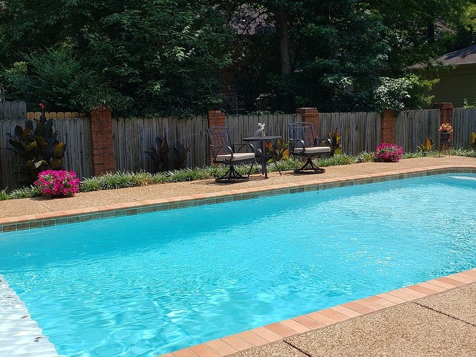 Enjoy your summer poolside!! This house has just under 3000 square feet, a fenced patio on the side of the house and an in-ground, Gunite saltwater pool in back. Plenty of space to entertain, or for a large family to spread out. Kitchen has granite countertops & stainless steel appliances, & room for a kitchen table or to add an island. Master bedroom, formal living room and den downstairs, with 3 bedrooms, a bathroom, plus a finished bonus room upstairs. Tons of space and storage!