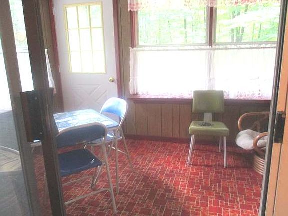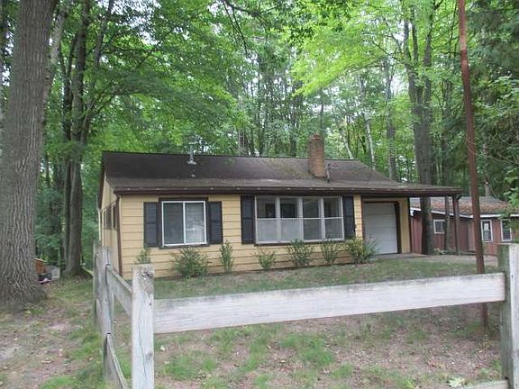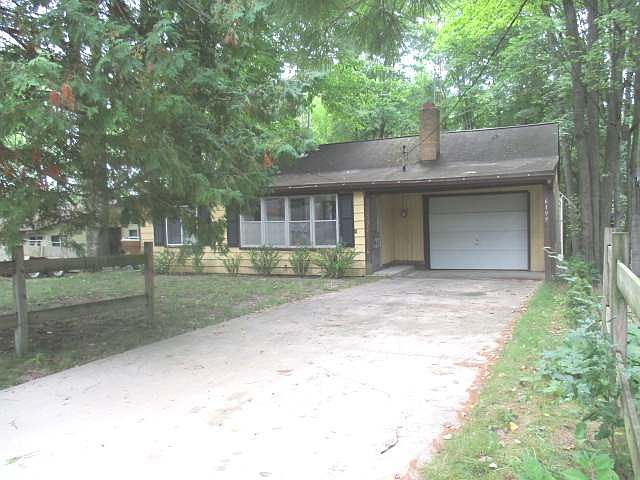 Year round get-away cabin with lake access to Bluff Lake, lots of state land nearby, rails to trails in close proximity, interior of home is roomy and offers open living/dining/kitchen area with fireplace, enclosed porch towards roadside, attached garage with workshop off of rear, #6471