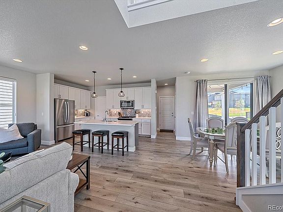 This beautifully designed farmhouse style home in The Canyons at Castle Pines offers a bright and open floor plan, top of the line finishes and is in “like new” condition. Stainless appliances, quartz countertops tops, a large kitchen island, walk-in pantry, luxury vinyl flooring, a gas fireplace, custom window coverings and updated lighting. The upper level includes 3 bedrooms and two baths including the master suite with 4-piece bath, dual vanities, large walk-in shower and a walk-in closet. An upper level laundry adds to the convenience of this floor plan. The large unfinished basement offers room for expansion.