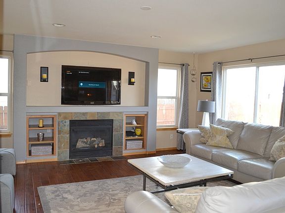 6199 Snowberry Ave, Firestone CO 80504 This coveted style home features an open concept floor plan that is perfect for entertaining or for families. Pride of ownership and move in ready. Other features include a large master bedroom with 5 piece bath, mini master bedroom and two other large bedrooms plus open concept loft! Spacious 18 X 16 living area opens to the kitchen and formal dining area. This bright and cheery home with new hardwood floors is exquisite. You will enjoy easy access to local shopping, services and travel routes. This home will not last long! Beds: 4 Baths: 3.5 Car Spaces: 3 Seller type: Private Owner Subdivision: Ridge Crest Total Finished Sq. Ft: 2219 Basement Unfinished: 1026 Year Built: 2004 Gas forced air Central air conditioning Main Level: Living room, kitchen, dining room, laundry, 1/2 bath, Eating space, kitchen island and laundry room Upper Level: Master Bedroom: 15 x 14 Mini Master, 2 Bedrooms, 3 Full Baths, Open loft area Other: Bay window stamped and stained patio, sprinkler system, new hardwood floor, surround sound and tech ready system, walk-in-closet, kitchen pantry. Inclusions: Dishwasher, Range, Stove, Microwave, and refrigerator Exclusion: Washer, dryer