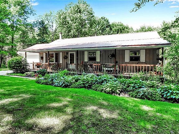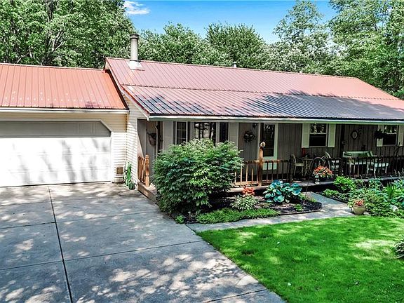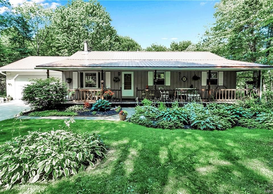 Welcome Home to 6199 West Tillen Road. This wonderful 3 Bedroom and 2.5 Bath Ranch Home is situated on 2 acres in the Town of Boston with Eden Schools. A winding, tree-lined driveway leads you to an expansive and inviting front porch. Entertain with the ease in the living room with vaulted ceiling and wood burning fireplace that flows into a large eat-in fully applianced kitchen with a breakfast bar and dining area. Enjoy the convenience of two, updated full bathrooms with one attached to the master bedroom. Each bedroom offers generous closet space. The finished walk-out basement boasts fantastic bonus living space complete with a laundry area and half bath. Enjoy the outdoors on the raised, back deck overlooking a wooded lot with beautiful mature landscaping. Recent improvements include a 5 year old metal roof, brand new garage door and opener, sliding glass door and brand new carpet in the master bedroom to name a few. Additional features include an extra parking area and a large storage shed. Showings begin immediately and negotiations start on 8/25 at 5pm. Schedule your tour today!