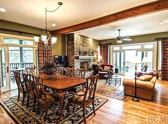This straight walk in unit at the Views has wonderful mountain and vista views and a high elevation to assure mountain breezes. With 10 ft ceilings and lots of light-filled windows, this three bedroom, three bath is a real beauty. An open floor plan with hardwood floors and a stone fireplace opens to a screened porch with fireplace for entertaining and outdoor dining. A grilling deck with a swing lets you cook among the clouds.Two master suites with spacious bedrooms and baths with tubs and showers allow for privacy and long-term guests! A lower family room is an added bonus in the lower Views units. Designer furnished with lovely antiques -this is the best value! Priced to sell at $545000.
