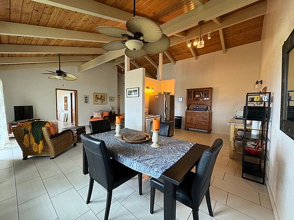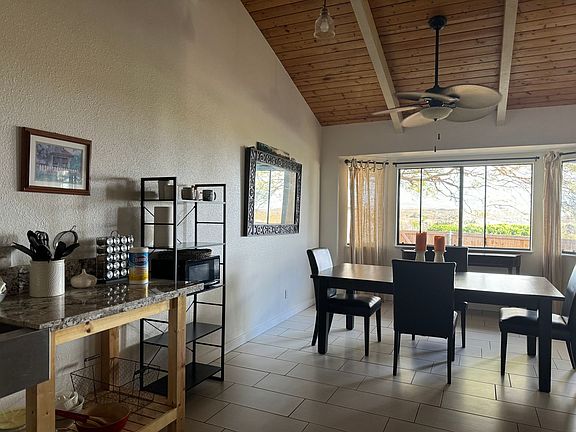 Fully furnished, 3 bedroom, 2 bath home with 1 car garage in Kamuela View Estates (dry side of Waimea). Lovely home, newly renovated with porcelain tile flooring, new granite countertops, new tiled primary shower, new claw tub in 2nd bathroom. Sunrise, sunset, and mountain views are amazing and colorful from the kitchen, living room and bedroom windows.