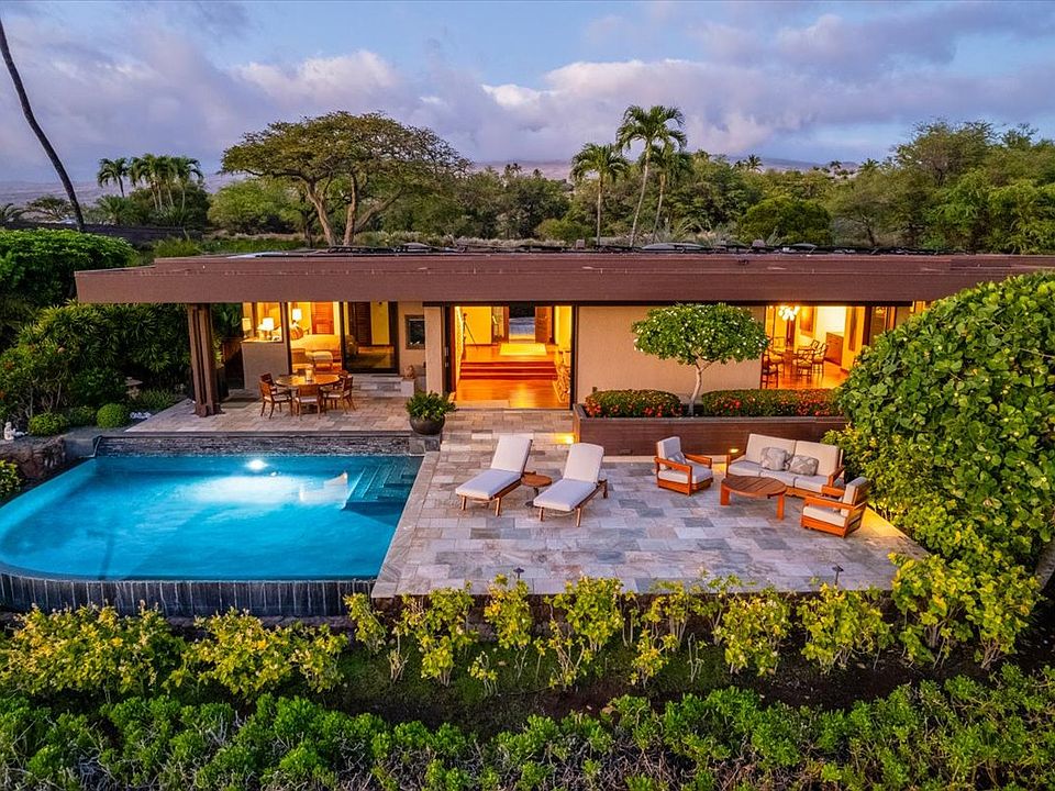 Rarely available Villas at Mauna Kea, in one of the best front row locations within the project. Walk to golf, hotel and beach. Amazing views of the ocean, shoreline with waves crashing on the rocks and year around sunsets, over foreground golf course fairway. Completely renovated, including 3 br/3.5 ba layout with two bedrooms on the view, new hardwood floors, tastefully updated kitchen with new appliances, all new countertops and fixtures, new stone/fixtures in bathrooms, new 4-zone ac system, Fleetwood door systems, including pocket doors in the living room, photovoltaic panels, plus new pool/pool deck with soothing water feature. In addition, comes with a complete inventory of designer furnishings and art. Bring your suitcase and move in...nothing more needs to be done to enjoy life at the Mauna Kea! Resort currently under $180m renovation, thus adding value to your investment.