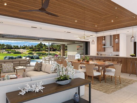 Under construction and scheduled for completion July 2023, "Makai Hale" provides 4,288 square feet of single level living with five bedrooms plus a media room and six bathrooms and 1,466 square feet of covered lanai situated on a site of close to 27,000 square feet. "Makai Hale" offers a unique layout with two separate outdoor entertaining areas.