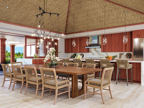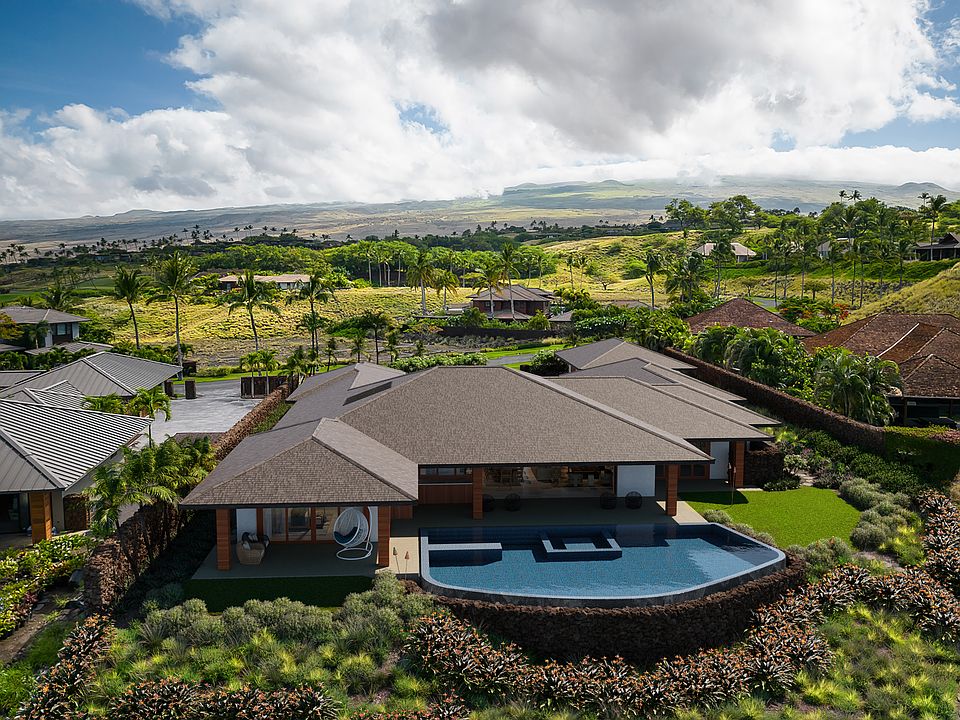 Kauna'oa #22 offers five bedrooms plus an office with six and a half bathrooms with 4,712 square feet of living area situated on a lot of 27,660 square feet. The large open great room flows out to the covered lanai of 1,287 square feet overlooking the ample pool with hot tub. The above water swim up pool bar with three submerged stools is a unique feature that must be seen to be appreciated. The three car garage with 912 square feet complete the package.