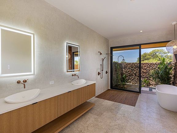 Seamless Indoor-Outdoor Living. Expansive lanais and deck areas, totaling nearly 2,000 sqft, invite the natural beauty of Hawai'i right to your doorstep. Revel in your indoor/outdoor shower gardens and unwind in the double knife-edge pool and spa—a serene water feature that feels like an extension of the ocean.