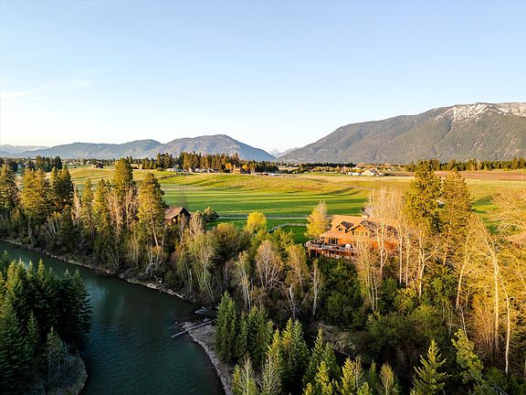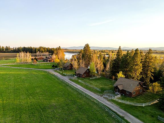 Gentry River Ranch. An iconic Montana property with a setting and buildings that will bring to mind the television series "Yellowstone". Sitting on the banks of the Flathead River, and with stunning views of the peaks of Glacier National Park, this handcrafted custom western home and its surroundings are simply spectacular. On over 17 acres and with almost 800 feet of river frontage, the property is host to not only the main house, but also three turn-key guest cabins and a 36x72 shop/barn. The primary ranch style home has 5 bedrooms and 5 bathrooms spread out over 5400 sq. ft. with numerous upgraded finishes including a double-sided floor-to-ceiling stone fireplace, wood flooring, wood beam accents, iron railings and a luxury chef's kitchen with the most functional butler's pantry. The kitchen windows and the lovely covered front porch look right at the mountains while the huge wrap-around back deck overlooks the river. The main level primary suite has a fireplace, doors to the deck, a soaker tub and a tile shower. Also on the main level you will find an office with fantastic views and a conveniently located laundry room. On the upper level is bonus space with another fireplace and 2 bedrooms with ensuite bathrooms. The lower level of the home has been set up to function as a separate unit if you like, complete with 2 more bedrooms and a 2nd kitchen. Each of the 3 furnished guest cabins have 3 bedrooms, either 1 or 2 bathrooms, and a covered back deck. The shop/barn has been remodeled to include an office and conference room, as well shop and barn space. The acreage is horse ready with fencing and cross fencing and has had hay production in the past. The property also has exclusive access to state owned river frontage and a 100-acre island. Flathead River water rights included! Gentry River Ranch is truly the epitome of Montana living at its best.