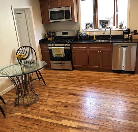 Wow completely renovated apartment located on the first floor of a two family house. Plenty of parking and a huge level yard! Hardwood floors throughout w/ charming wraparound porch! Eat-in Kitchen with granite counter-tops & stainless steel appliances! Full length of home basement for storage with bran new washer/dryer! A commuter's dream close proximity to all major highways, shopping & public transportation! Absolutely nothing to do but move in and unpack!