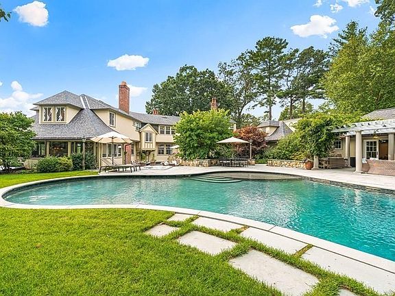 Set on 2.66 majestic acres in sought after Dana Hall, this iconic estate has been beautifully updated and expanded to incorporate today's modern amenities, while preserving the property's exceptional period details. Over 6500 sq ft of gracious & elegant living spaces, perfectly appointed for entertaining on any scale. A dramatic stone-walled foyer w/carved staircase anchors the fireplaced formal living + dining rooms. The expansive great room, chef's kitchen + billiard room flow naturally to the spectacular backyard oasis featuring custom pool w/waterfall, jacuzzi, built in kitchen, sprawling bluestone patio + trellised pool house w/full bath, laundry + sauna. The 2nd level of the main house includes 4 bedrooms, 3 full baths, an expansive office + sitting room. A guest/in-law suite, above the 3 car garage, exceeds expectations. The adjacent buildable lot w/sports court provides endless possibilities. Timeless elegance + modern innovation in the heart of Wellesley Center. One of a kind!