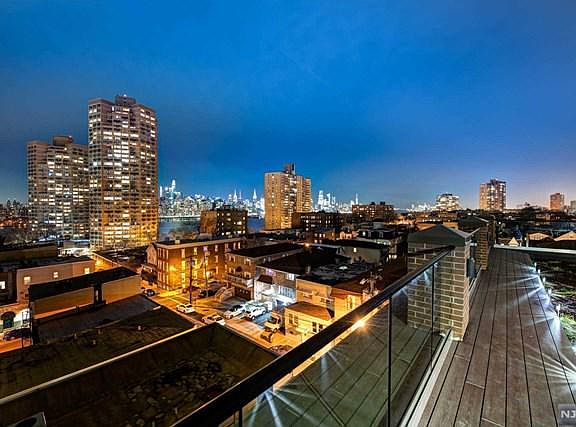 The striking modern architecture of these 39 New luxury condominium consist of geometric accents and the unmistakable design with an eco friendly. The open floor plans capitalize on breath taking views with oversized window and balconies. Enjoy the 6th floor green rooftop deck.Located one Block from Boulevard East convenient to all types of transportation, NYC by bus, NY Ferry and Light rail. In door garage assigned parking Scenic Views Contemporary Design Concrete and steel Construction. Open Plan Living 9 Foot Ceiling Heights Baths And Powder Room With Modern Cabinetry LED Lighting Throughout European-Style Kitchen With Island Quartz Counter Tops With Waterfall Edge (where applicable) Designer Stainless Appliances Green Roof Top Terrace With Summer Barbecue Club Room / Lounge EV Charging Stations. Private Garage Parking Photos are of two model unit. Pending tax abatement and assessment, 3% down with $17,500 grants to qualified buyers, closing start October.