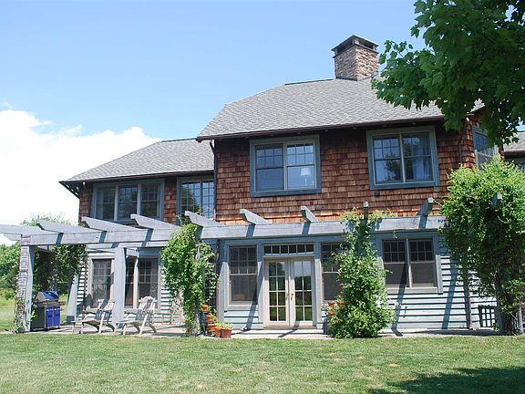 Beautiful Contemporary home, with high-quality custom finishes and oversize windows, offers bright, high-ceiling living spaces and breathtaking views on 79 very private acres. This four-bedroom home features stunning Catskill views, two ponds, mixed pastoral and wooded acreage, stream frontage and stone walls. Perfect as a full-time home or weekend sanctuary, this gracious residence offers fantastic country living. The flowing floor plan features a dramatic two-story foyer, and an inviting country kitchen with fireplace, Viking range, and custom cabinets. The Living room's grand ceiling height, oversized windows and French doors frame beautiful views of the Catskills. The bluestone patio and screened-in porch off the living room provide for comfortable al fresco entertaining. The intimate Study/Library, with built-in shelves and fireplace, and attached full bathroom, could also be converted into a first floor en suite bedroom. The light drenched, comfortable Master bedroom is en suite with dressing room. Two further light-filled bedrooms share a bathroom. The generous en suite guest room is on the opposite end of house with its own staircase for complete privacy. Beautiful flower gardens border the front entry. There is a walk in pantry and laundry room off of the generous mudroom. The attached two car garage; full unfinished basement with workout area and abundant storage; and automatic full house generator provide additional year-round conveniences for country life. The two-story farmhouse-style guest house (approximately 1500 square feet) and antique barn and potting shed, are privately set away from the main house, down a long driveway. This fantastic full-time or weekend location is convenient to Red Hook, Rhinebeck, Bard College, Hudson, Taconic State Parkway, and Amtrak.