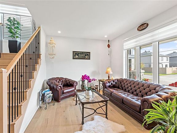 Welcome to this immaculate, newly constructed Minto home situated in the desirable Mahogany community. Consisting of 4 beds & 4 baths, this home boasts over $175k in upgrades including white oak hardwood, upgraded tile, custom blinds & upgraded lighting throughout. The chefs kitchen offers quartz countertops & high-end Bosch appliances + a dining area & separate Den. Direct access to the backyard through the upgraded terrace door w/ a phantom screen. Flowing seamlessly into the family rm, offering a gas fireplace & custom built-ins. 4 generously sized bedrms upstairs include the primary bedroom which includes a walk-in closet & 5pce ensuite w/ dual vanity sinks, soaking tub & walk-in shower. Unfinished basement can be transformed to your liking. Professionally landscaped, front & back irrigation system w/ a fully fenced backyard. Western exposure, gets full sun all day. Minutes to Rideau River, Manotick Village & Mahogany Bay. Attached 2-car garage w/ access to a custom finished mudrm.