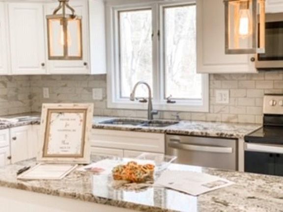 - Kit Dscrp: Dining Area, Flooring - Hardwood, Countertops - Stone/Granite/Solid, Cabinets - Upgraded, Kitchen Island, Stainless Steel Appliances, Recessed Lighting, Countertops - Upgraded, Remodeled, Lighting - Pendant