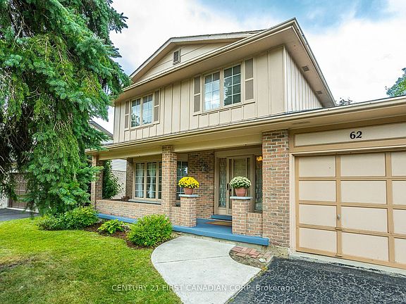 Attention Prospective Home Seekers, to appreciate 62 Andover Drive, as a prospective buyer, you have to put on your architectural designing lens and view it beyond its current condition. Really the potential for remodeling it to your own taste and specifications is endless! What it offers: (i). Great structural integrity (ii)Sizeable lot (58 X 117) (iii). A 2-storey home with 4-bedroom, 3- bath, double garage (iv). Lots of windows, providing natural lights (v). Large kitchen space with oak furnished cabinets (vi). Large Mediterranean-style living room area (vii). Very dated, and being sold "AS IS" with no warranties. Newer items include (2021): (i). Furnace (ii). Air conditioner (iii). On demand hot water. Amenities include: good public schools. High schools such as Saunders, and Westminster are all within a walking distance. Grocery stores, great shopping malls within few minute's drive and recreational parks for families activities. If privacy matters much to you, then 62 Andover is a home to consider. It bursts with tons of privacy from both front and back views. Come and see for yourself!!!