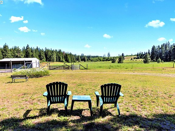 Stunning setting with farmhouse on 23 acres. The home takes in sweeping views of open meadows surrounded by big Douglas fir/cedars/pines. Pastures are fenced, cross-fenced for livestock. Two big ponds surrounded by a shady aspen grove, with Mt Hood in the distance. Fantastic infrastructure for a large (or commercial) organic garden. Barn for horses, a chicken palace! 560 sf ADU, plus 2 hook ups for RV or tiny homes. Private, quiet, beyond Magical!