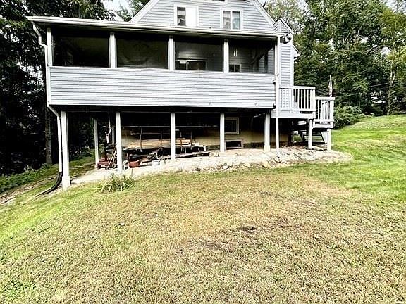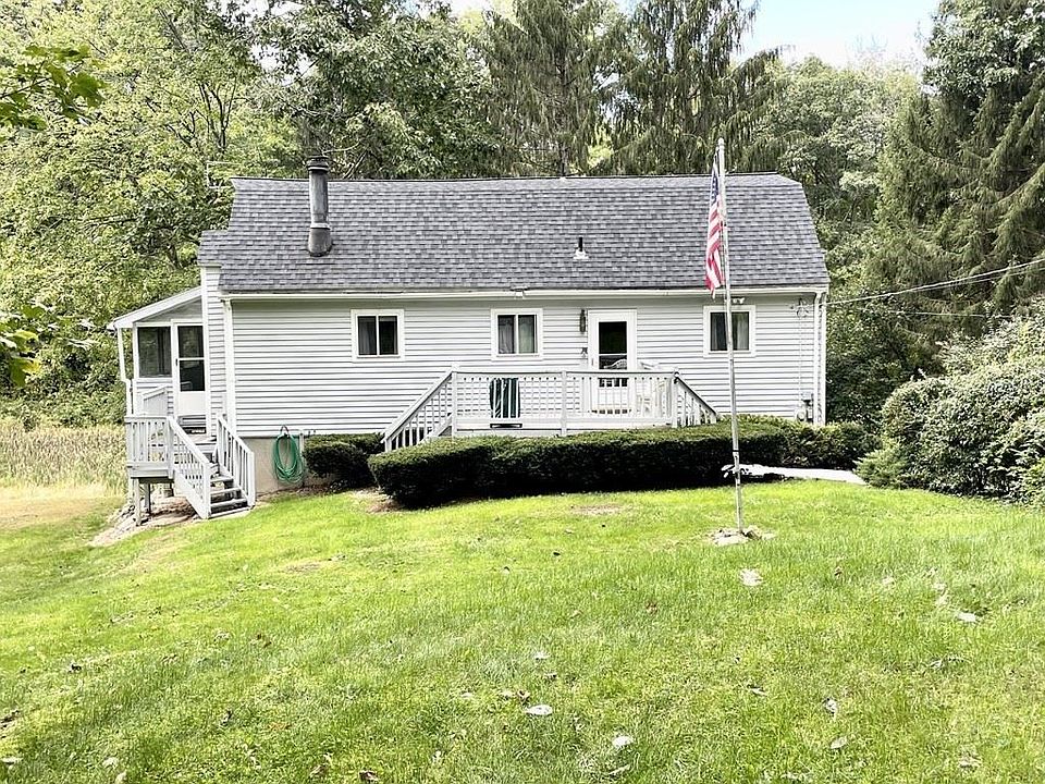 COUNTRY LIVING AT ITS BEST! Don't expect your typical "cookie cutter home" when you see this 3 bedroom 2 full bath post and beam style home. Expect quaint and cozy and really homey! The wood stove will take the chill out during those New England winter nights but the 3 season porch will be the spot you will enjoy the other 3 seasons out of the year for lots of peace and quiet and nature galore! The master bedroom suite on the 2nd floor offers a full bath and even a loft for a private home office. The 1st floor with 2 bedrooms and a full bathroom offers many possibilities.Plenty of off-street parking with a lower and upper driveway, including circular, for easy access coming in and out. The garage has a workshop for those handy and creative buyers out there! New septic and new roof were installed in 2015. The heating system was new in 2005. Some of the windows are newer. (APO)