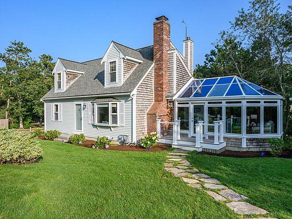 Waterfront on the Swan Pond River! A lovely Cape style home with a contemporary flair! The living space on the first floor is an open great room with a kitchen, living area, and a family room in a sun-filled solarium. So many spaces for entertaining or just relaxing! Upstairs there is another large sitting room plus a small outdoor balcony off the adjacent bedroom. The best space for entertaining or just relaxing is the enormous, newer deck (TimberTech PVC) in back which overlooks the back yard and the river! Newly refinished hardwood floors throughout most of the house with tile floors in the baths, kitchen, and solarium. Gas radiant heat keeps the solarium and kitchen toasty warm in winter! Wood-burning fireplace is the cozy focal point in the living room and there is a wood stove in the solarium. Upgrades were made to the insulation after a recent energy audit. Roof is just 2 years old. The 2 car garage has lots of storage above. Centrally located with the Town Landing on the Bass River, beaches on Nantucket Sound, restaurants, and shopping nearby! A very comfortable home in a serene location! Septic passed. Buyers and agents to confirm details.