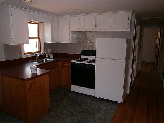 Great home on a quiet side street but easy access to many local amenities. This 2 bedroom 1 bathroom ranch has been undergoing renovations to bring it out of it's dated condition. New roof structure with added Farmers Porch . New 24x24 garage . New exterior trim,siding,gutters & asphalt roofing . Newly remodeled kitchen with new SS appliances . Newly remodeled living room , fireplace & pine flooring .