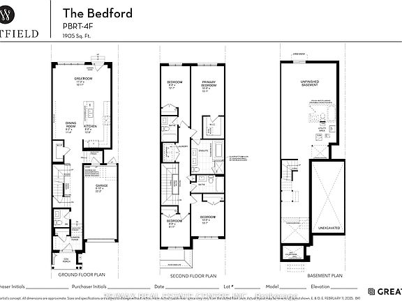 Stunning 4-bedroom, 4 washroom townhouse by award-winning Great Gulf, ideally located at Mississauga Rd. and Steeles Ave. in the prestigious Brampton West community. This 1905 sq ft bright, open-concept home features 9-ft ceilings on all levels (in basement as well), hardwood floors, and oak stairs with iron pickets. The upgraded kitchen includes quartz countertops, a centre island, and premium finishes. The spacious primary bedroom offers a 5-piece ensuite and walk-in closet. Large windows provide abundant natural light, and convenient upper-level laundry enhances everyday comfort. Enjoy easy access to major highways (401/407), top schools, parks, shopping, and nearby Mississauga and Milton amenities - the perfect blend of style, location, and convenience. DISCLAIMER: All illustrations are artist's concept. All dimensions are approximate. Sizes and specifications are subject to change without notice. Actual usable floor space varies from the stated area. Actual layout may be reverse of layout shown. E. & O. E."