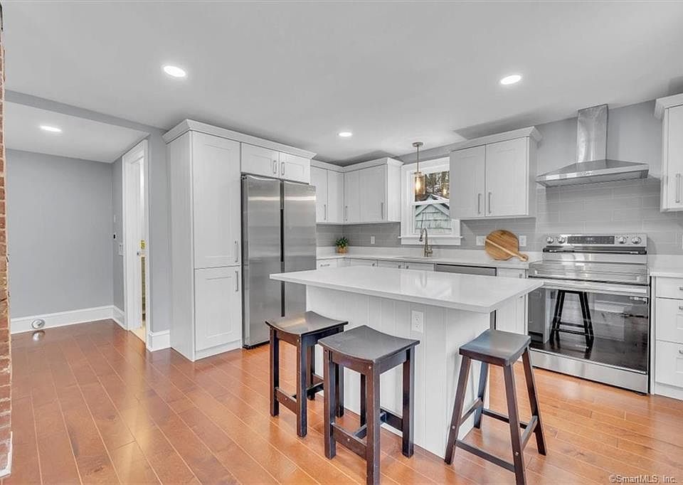 Welcome to this beautiful and thoughtfully renovated New England colonial home filled with character and charm perfectly situated near UCONN Health, ESPN, walk to Unionville village and everything it has to offer: Dining, shopping, cafes, seasonal farmer's market, places of worship. Farmington Heritage Canal Trails (40+miles!) Farmington River trails all near by. Move right into this sunny home with extensive modern updates including: new roof, windows, furnace, plumbing and electric. Step into this beautifully well thought out, eat in Kitchen which is a chef's dream featuring quartz countertops, stainless steel appliances, recessed lighting, tiled back splash, plenty of storage space with center island overlooking a large level yard awaiting gatherings & gardening. Formal dining with floor to ceiling bow windows opens to the kitchen and to the spacious, inviting living room. On the first floor you will also find a beautifully tiled full bath with granite topped vanity; an area for 1st floor washer/dryer, and a private home office space as well. Upstairs you will find 3 well sized bedrooms along with the 2nd full bath/tub, granite vanity. Come see this hidden gem in this quiet neighborhood just off Main Street!