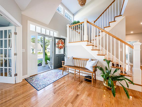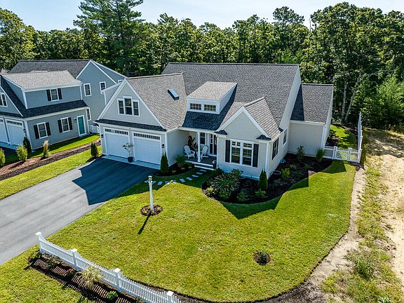 From the moment you step onto the front porch of this 2-year old home, you will know you are entering a beautiful open concept home with lots of natural light coming in from over-sized windows, skylights and sliders. The Kitchen with 8' island is equipped with high end appliances, including separate wall oven and plenty of storage in the large pantry with multiple shelves. The living/family room is spacious and open to the kitchen. With First floor office, Laundry, half bath and primary bedroom, one-floor living is a breeze. Two additional ensuite bedrooms upstairs are accessed by a pretty staircase and loft. You will be amazed at the many large closets, oversized 2 car garage and fenced in yard with two paver patios. Backyard abuts Conservation land, and there is a community well for irrigation. Just a short drive to Mashpee Town Beaches, New Seabury, Mashpee Commons and boat landings which make this an ideal Cape Cod location.