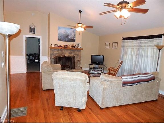 This is a very well built home. It is nestled in a private 1.74 acre lot. You'll enjoy the nature from the large covered front porch as you sit and listen to the stream. The inside boasts soaring cathedral ceilings, hardwood floors, huge rock fireplace, gorgeous cabinets, and stainless appliances. Everything is on one level. This is a very well built low maintenance home that is very convenient to the Gorges State park. This home is priced right and is a must see!