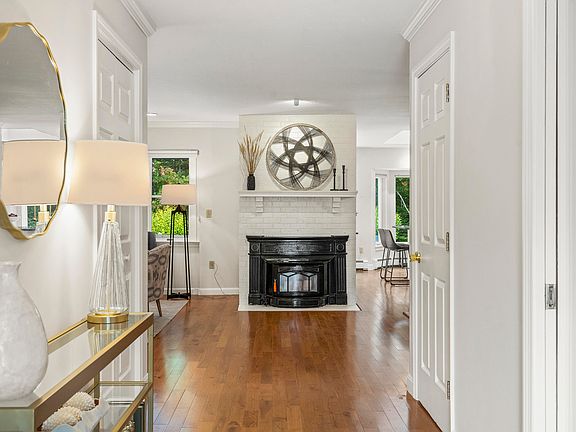 Come be a part of the Blueberry Cove community in this reimagined, freshly painted townhouse-style home! Enjoy carefree living as you stroll the beautiful grounds with a trail leading to the river, relax at the association pool, or play on the tennis/pickleball court—without worrying about mowing, shoveling, plowing, or exterior maintenance. This bright, sunny, and spacious home features large decks on two floors overlooking a lush green lawn and beautifully manicured gardens. The flexible floor plan offers many options, with a full bathroom on the first floor next to a room that can serve as a guest bedroom, media room, or home office. The open living and dining area is anchored by a cozy wood stove (using biobricks) for chilly evenings, complemented by a minisplit for summer comfort. A wide picture window frames views of the deck and gardens beyond. The cathedral-ceiling kitchen, with its oversized skylight, offers elegant stone countertops, generous storage, and a petite bay window—perfect for morning coffee and birdwatching. Upstairs, the primary bedroom suite features a wood-burning fireplace and a door leading to the private deck. A hallway with two closets connects to the primary bathroom with a step-in shower. Conveniently, the laundry area is also located upstairs and provides extra space for a hobby, desk, or storage. The guest suite has its own door for privacy and includes an ensuite bath with a shower/tub and a bedroom with large windows to take in the views. Additional mini-splits provide both heating and cooling on the second floor. The lower level includes a finished room ideal for an office or den, plus an oversized basement for ample storage.