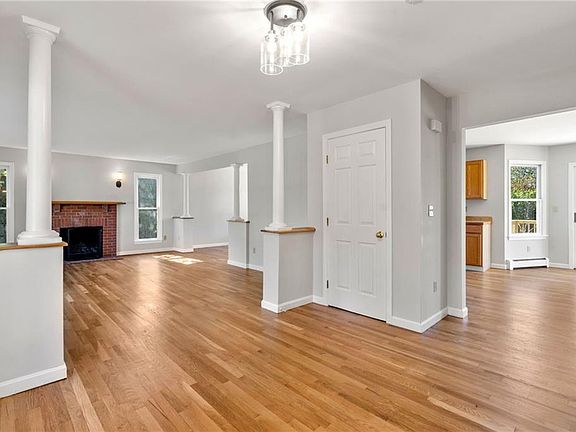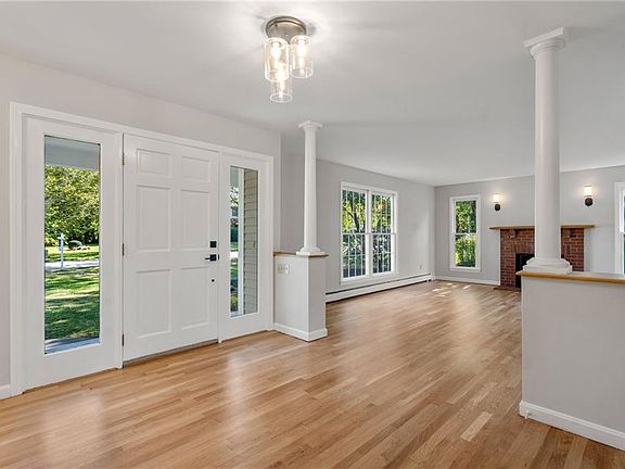This recently renovated 4-bedroom contemporary Colonial home has sunny, spacious rooms and offers lots of options in lifestyle. The first floor features a living room with a fireplace and an open floor plan to the dining room. There is also a large eat-in kitchen with sliding doors to the deck and access to the laundry area, a large entry hall with two coat closets and a first floor lavette. The second floor features a primary bedroom with en-suite bath, two more bedrooms, one full bath and a fourth large bedroom/bonus room with closets. There is also an attached two-car garage with plenty of space for bikes and other storage items. Landscaping is underway and should be completed soon. With more than an acre of land located at the end of a quite cul-de-sac, this home offers privacy and comfortable living while situated close to Newport, shopping, beaches and more. The lawn has recently been seeded.