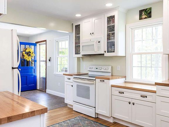 Enjoy year-round vacation living in this charming 4 bedroom, 2 bath raised cape on 1.66 acres with views of Lake Champlain and deeded access to the lake just steps from the front door. Lake access includes multiple foot paths and use of a boat launch area private to this quiet lakeside community. The sunsets over the lake are gorgeous and you can swim, boat, fish, cross country ski and skate without leaving home! This well-maintained home has hardwood floors, newer windows and a new kitchen with red oak countertops, a farmhouse sink and stained glass details. Keep comfortable with affordable heat and AC provided by new heat pumps, a wood burning fireplace with airtight insert, and owned solar panels. The full, dry, heated basement is perfect for a workshop and storage. Outside you’ll find privacy, beauty, and homesteading opportunities with woods, fruit trees, lilacs, berry bushes, perennials, raised garden beds, a woodshed, a chicken coop, and a fenced yard for chickens or dogs. The detached one car garage has a built-in potting table. A newer mound septic system, roof and other upgrades make this house turnkey ready. Just minutes from I-89, this home offers the best of country living but with quick access to Montreal, Burlington, ski resorts and village amenities. High speed internet is available. Priced below recent professional appraisal!
