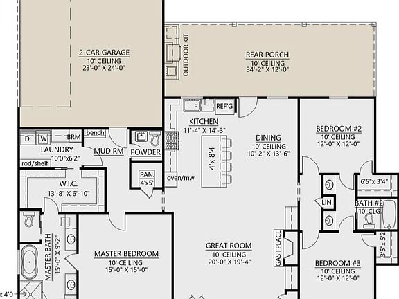 - Ceiling Fan(s), High Ceilings, Double Vanity, Kitchen Island, Granite Counters