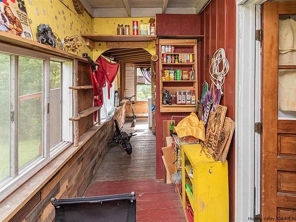Home is where the art is! Fantastic opportunity to own this charming 4 bed, 2 bath vaulted cape on 1 acre. The possibilities are endless in this loved in, lived in home. Creative, charming and quirky all mixed together in this great space AND there is a Morton building to work out of, create in, store your collections or park your rides! Master suite is on the main floor, master bathroom is mid-renovation. The light filled living room offers high ceilings and a freestanding woodstove that can be used to heat the whole house. The remaining 2 bedrooms can be found upstairs along with a small loft overlooking the living room. The grounds are lush and wild with gardens, both flower and vegetable. Follow the stone stairs down to the lower lawn and garden on Rt 145. This is a must see, schedule your showing today!