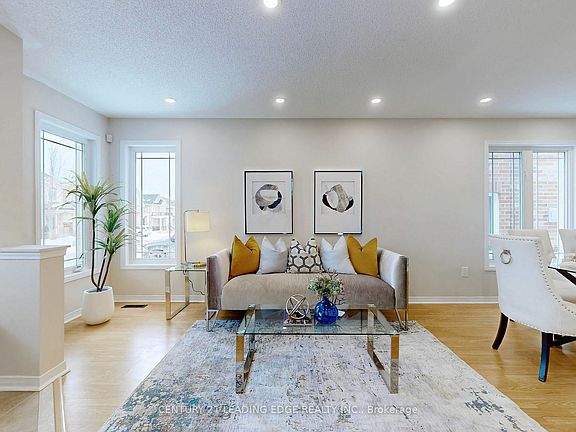 Welcome to this bright and spacious 4-bedroom detached home in desirable Northeast Ajax! Featuring a modern open-concept design, this home boasts elegant wood flooring, upgraded oak staircase, and pot lights throughout. Beautifully upgraded kitchen features stainless steel appliances, quartz countertop, central island, and generous eat-in area overlooking the cozy family room with a gas fireplace and bay window. The primary bedroom boasts two closets and a luxurious 5-piece ensuite, while the home has been freshly painted. The professionally finished basement includes a kitchen, recreation room, bedroom, and 4-piece bathroom, ideal for extended family or additional living space. Exterior highlights include the interlocked front walkway, upgraded stone entrance, and a double driveway. Conveniently located close to hospitals, shopping, banks, parks, schools and all essential amenities. Just move in and enjoy!