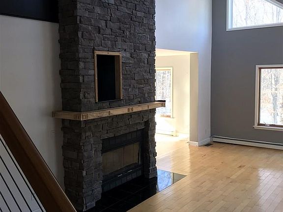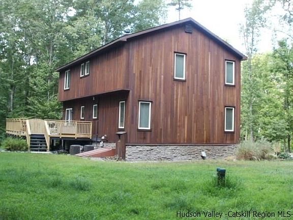 Spacious 4 bedroom, 3 bath contemporary home available for lease. Some unique features include skylights in the living room with soaring ceilings and fireplace, two of the bedrooms have ensuite bathrooms, expansive deck off the back, and 2 zones of air conditioning. Theres also a finished basement for extra living area, or storage. Uniquely sited on a wooded 5 acre property, which is set back well off the road. This is a private and secluded location, yet is very close to all of the offerings of High Falls. Available March 1, 2018.
