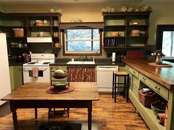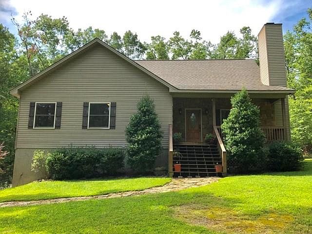 This beautifully private home is set on 4.1 wooded acres far back from the road and gives you palpable tranquility. It is a calm and serene atmosphere.Inside with cathedral ceiling in living room ,is a wood burning stone fire place. The kitchen has custom country -style cabinets (as do the 2 bathrooms) and shelving with a breakfast bar .The dinette area has access to a screened porch and a fenced garden for your pets .The house feels country and cozy ... It is a 3/2 with beautiful flooring and trims... the garage is down in basement . The whole place is full of flowers, gardens with various trees, plants rich in colors a small creek traverses the lot giving charm to the driveway. On a cul- de -sac this unique home could be your dream home ..