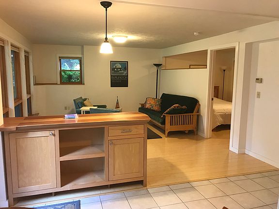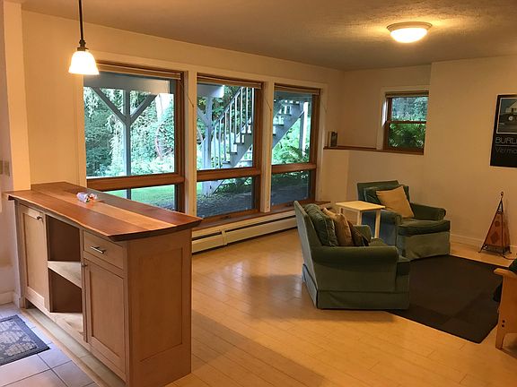 This unique garden level, furnished one bedroom apartment is located in Queen City Park in South Burlington on Lake Champlain. This is a furnished apartment beneath an owner-occupied private home adjacent to Red Rocks Park and Lake Champlain. The monthly rent includes occupancy, basic furnishings (there is some flexibility around the furniture), heat, hot water, electricity, internet access, trash removal, parking, laundry facilities, beach access and canoe use. No smokers, cats or dogs. Available now, up to 8 month lease until 5/31/26 and may be extended. All utilities included in monthly rent.