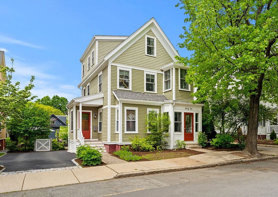 Lovely Victorian 2-family nestled on a quiet, leafy street near Davis Sq. The 1st floor unit features 1 bed, 1 bath, generous living and dining room spaces, IKEA kitchen and dedicated basement laundry. The luxurious 3 bed / 2 bath owner’s unit encompasses the top two floors. This unit was gut-renovated in 2014 with HW floors, central A/C & heat and high-end finishes throughout. The 2nd floor features an open concept living room, dining room and chef’s kitchen with a large island. Down the hall is one bedroom and a full bath with clawfoot tub and separate shower. A skylit staircase leads to the elegant 3rd floor primary suite, with walk-in closet, en-suite bath, private deck and a bonus space perfect for an office or nursery. An additional bedroom completes this floor. Outdoor amenities include a 2-car driveway, lush backyard with mature plantings, in-ground irrigation system and a large patio. Prime location close to Davis Sq T, buses, bike path, Tufts Univ., shops and restaurants.