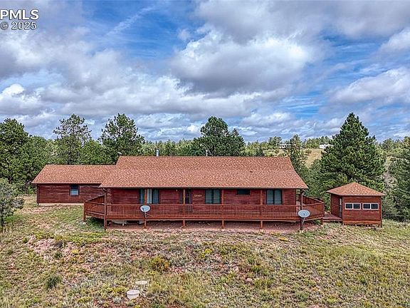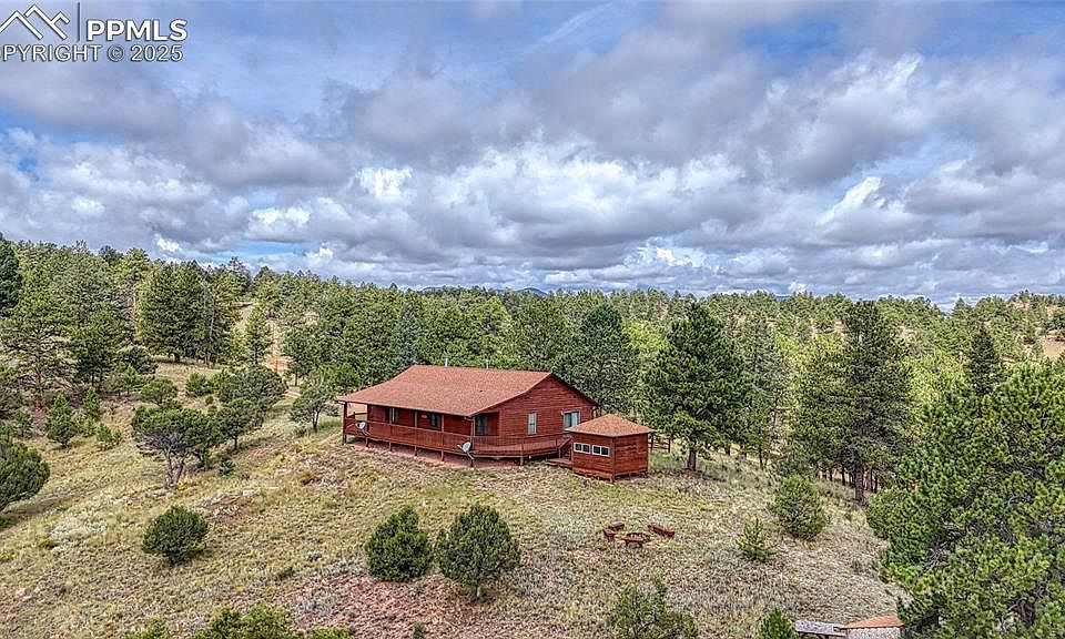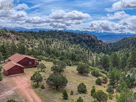 Discover your mountain retreat with this well-maintained ranch home set on 20 private acres. This 3-bedroom, 2-bath property offers open-concept living with tongue-and-groove vaulted ceilings and a cozy wood-burning stove. Step outside to take in the breathtaking canyon views from the wrap-around deck or relax on the covered porch. A detached 2-car garage provides plenty of storage and parking. With no covenants, a shooting range, and endless room to explore, this property is perfect for those seeking freedom, recreation, and Colorado mountain living at its finest. Septic system has just been pumped and inspected, and a whole-house generator ensures comfort and peace of mind year-round.