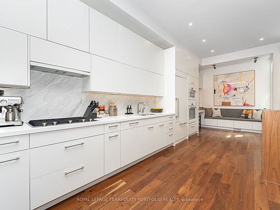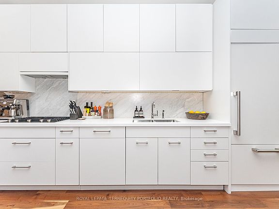 Welcome to the Iconic Claremont Lofts! Originally a grand banquet hall in the 1930s, this boutique residence was reimagined into one of Queen Wests most unique and sought-after loft conversions, combining historic character with modern sophistication. This extensively renovated townhouse offers a perfect blend of style and function. The open-concept main level showcases a chef's dream kitchen with double ovens, a large gas cooktop, wine fridge, breakfast bar, and a versatile work/lounging area. A striking modern glass staircase with integrated lighting becomes a true architectural centerpiece, while wide-plank hardwood floors flow throughout. The second bedroom retreat includes heated floors, a stylish 4-piece bath with heated floor, and a cozy loft space-ideal for guests or creative use. The primary suite is warm and inviting, complete with a spa-like marble bathroom with steam shower and heated floors designed for comfort and indulgence. Crowning the home is a private rooftop terrace that is nothing short of spectacular. With panoramic CN Tower and city skyline views, this outdoor oasis features a full dining area, amazing outdoor kitchen with Viking BBQ, fridge, wet bar, a large separate seating lounge, and even an outdoor shower. The ultimate space for entertaining or relaxing under the stars. Rare for the area, this townhouse also includes a private garage with direct access from the main floor, adding unmatched convenience in the heart of Queen West. This is more than a home-it's a lifestyle, where history meets modern luxury. Must see to appreciate!