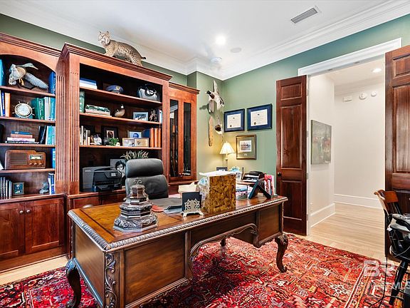 Luxury Meets Convenience at this Stunning Custom-Built Home by M.D. Price! Located just a short walk from the Country Club of Mobile. This thoughtfully designed brick home offers approximately 4,725 sq. ft. with 4 bedrooms, 3 full baths plus 3 half baths. As you enter, you're greeted by a grand front staircase and an exquisite formal dining room with a sparkling crystal chandelier, built-in china cabinets, buffet counter area and pocket doors - Creating an elegant space for family celebrations and holiday gatherings. You'll be impressed by the stately paneled office with custom bookcases providing a quiet area for those days working remotely. The recently updated kitchen is a chef's dream! Featuring: Rhino white honed countertops, center island workspace with prep sink, a New top-of-the-line Subzero, Wolf gas cooktop, stately hood, oven, microwave, stainless steel apron sink, wine cooler and updated lighting. You will love the breakfast nook dining area and separate waterfall counter area Buyer to verify all information during due diligence.