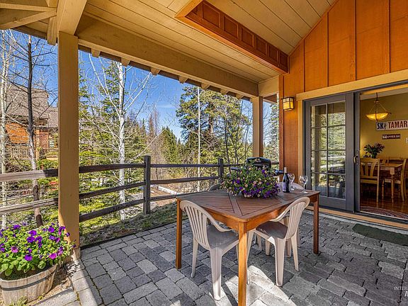 Premier one-bedroom townhome in Tamarack Resort. 62 Clearwater sits on a spacious lot without any neighbors to its south which affords the largest back yard space with a private patio and fencing along its northern border. Enjoy the views of the ski slopes from its private hot tub, the sound of the seasonal creek below, and the well maintained landscaping and hardscaping. The detached garage is deep enough and high enough to organize all of the toys you will enjoy in Tamarack. This 952 SF home is energy efficient with a pellet stove that keeps yo toasty during the ski months. Offered completely turn key with newer appliances, a fully equipped kitchen, and a spacious bedroom and bathroom upstairs. The vaulted ceilings and high windows provide an abundance of light throughout the home. Sitting just around the corner from the base of the Buttercup Chairlift and across from the groomed ski trail, make this townhome your true basecamp for all of the adventures that Tamarack has to offer.