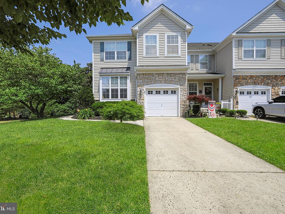 Nestled at 62 Compass Circle in the serene community of Rancocas Pointe, this impeccably maintained end-unit townhome is active on the market. Boasting the coveted Stonington Model, it sits gracefully against a backdrop of lush woods and open space, offering a peaceful and picturesque setting. As you step inside, a feeling of spaciousness and light envelops you. The expansive living room seamlessly connects to the elegant dining area, creating a seamless flow for entertaining and relaxation. The kitchen features luxurious granite countertops, stainless steel appliances, and artfully upgraded cabinets. Adjacent to the kitchen, the breakfast nook invites you to step outside to the deck, where you can savor tranquil views of the surrounding open space and natural beauty. The family room boasts soaring ceilings and a beautiful gas fireplace with a mantel. Ascending the gleaming hardwood staircase to the upper level, the luxury continues. The sizeable primary bedroom has a walk-in closet, a sumptuous bath, a rejuvenating soaking tub, a double vanity, and a separate shower. Two additional bedrooms, a full bath, and a convenient upstairs laundry complete this level. The home also offers a sprawling finished walk-out basement, providing an expansive canvas for alternative living spaces for entertainment, work, or rest. The basement offers a powder room. You'll also find a generous unfinished area tucked away within this space, perfect for all your storage needs. The association amenities include lawn maintenance, snow removal, playground, tennis, and pickleball courts. This home also benefits from an excellent school system and is conveniently located near major highways, the Centerton Shopping Center, and the beloved Wegmans. It's a sanctuary offering natural beauty and modern conveniences. Schedule a visit. You will not be disappointed!