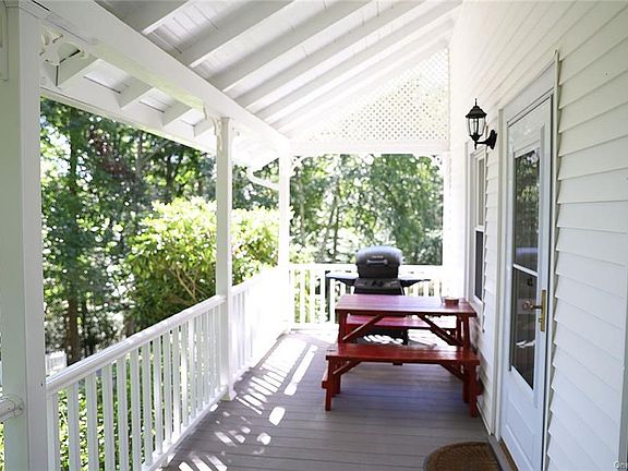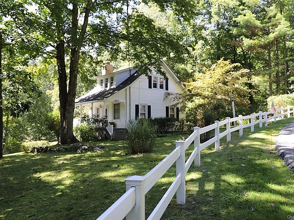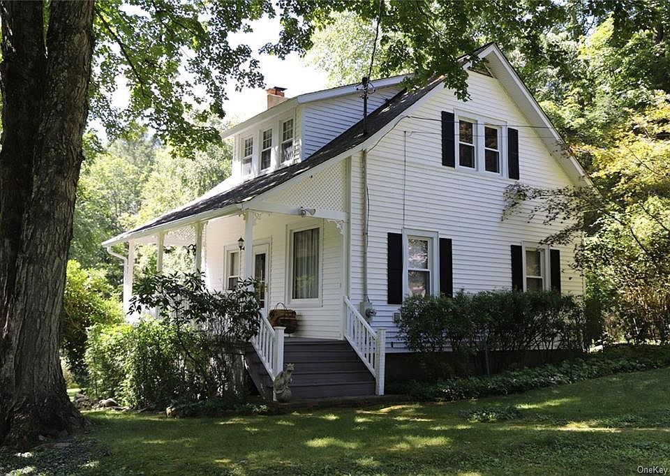 It doesn't get much sweeter than this! Nestled privately on 2 park-like acres, this quintessential country home is surrounded by stone walls and bordered by a stream. The sun dappled yard has stunning rock outcroppings and several gardens of flowers, ferns, fruit trees and best of all--listen to the soothing sounds of flowing water. You'll feel instantly at home inside--it is cozy and pristine. Welcoming hardwood floors, fireplace with woodstove insert, formal dining room and kitchen with brand-new stainless refrigerator and dishwasher. Upstairs there are two bedrooms and a renovated full bath. Lots of light pouring in the windows with views of mature trees for shade. On the lower level there is a heated laundry and utility room, workshop area and a sweet half bath. The additional space is wired for electric and could become whatever you want. Walk out basement leads to a bluestone patio just waiting for dinner and friends. The house has cable, so come and work from home. Exhale!