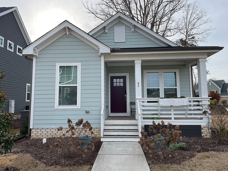 Furnished or unfurnished (if preferred) Cozy Cottage in Chatham Park next to historic downtown Pittsboro. Hardwood floors throughout. Brand new natural gas stove/oven and quiet 42db dishwasher. Upgraded lighting. Master bedroom has brand new bed and an encased Sleep Innovations medium mattress. Full size washer and dryer. Living room has 8ft Luxe depth Restoration Hardware leather couch and floating TV console. Walking distance to shopping. Plenty of walking trails within the Chatham Park community. Exclusive access to the Cottages outdoor pavilion. Dog park. Two assigned parking spots with EV charger. Well lit walkways. Optional mid-term lease (less than 1 year) can be arranged. 1 year lease of the cottage, tenant pays all utilities and ($2000/month rent). Mid-term lease (less than 1 year), all utilities paid by landlord and renter pays ($2500/month rent).